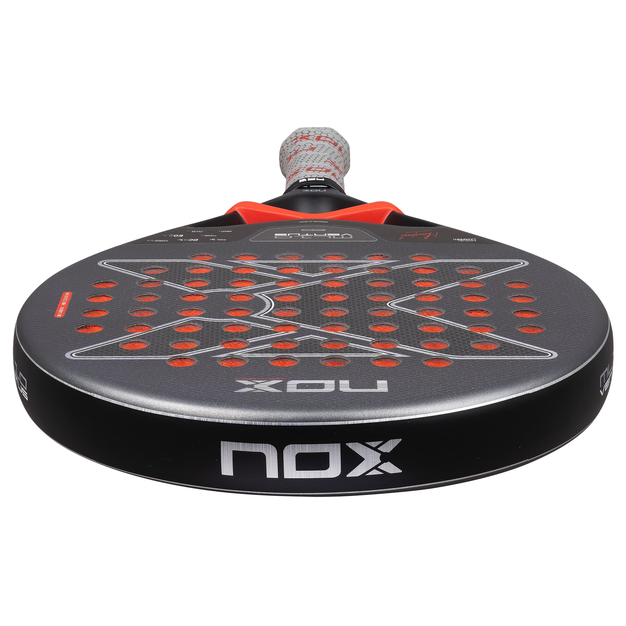 Custom Grip Technology – Patented NOX grip system certified by Testea Padel to enhance hold and reduce vibrations.